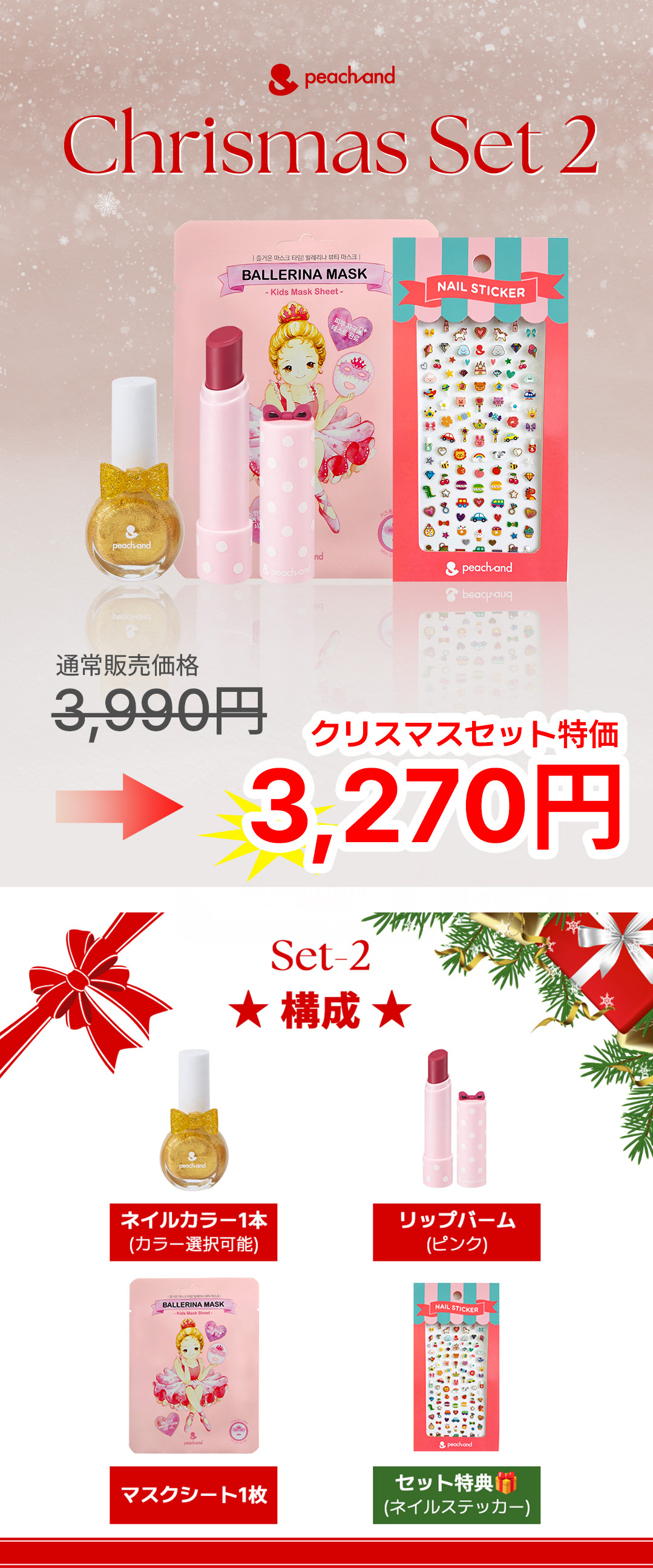 【クリスマスset2】3+1点set★ネイル1色選択+リップカラースティック+マスクシート+ネイルステッカー 1点セット クリスマス限定ラッピング付き