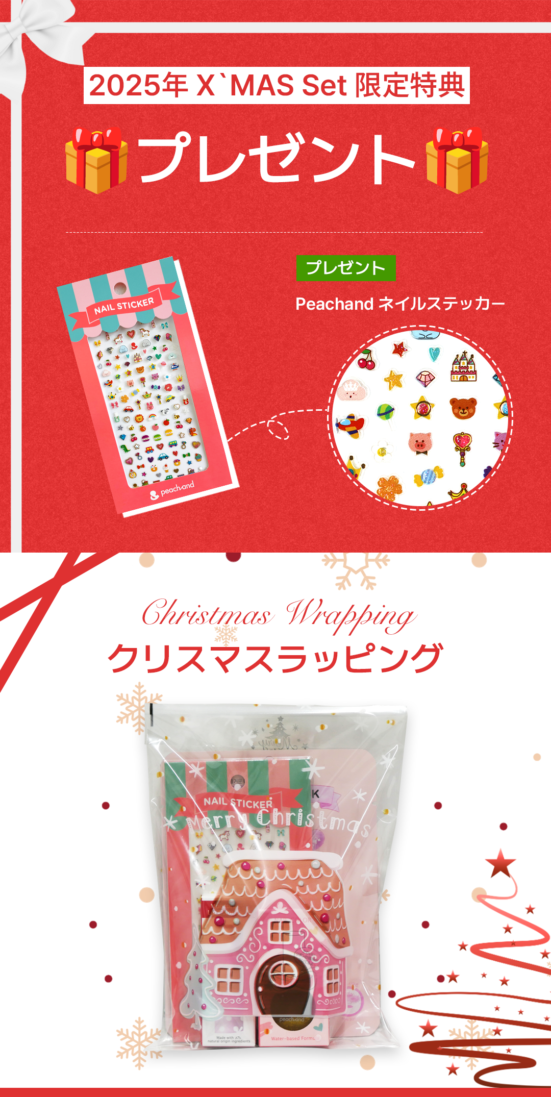 この特別なクリスマスセットは、あなたのビューティールーチンに華やかさをプラスするアイテムが揃っています!韓国、日本でパッチテスト済みのリップカラースティックは、しっとりとした塗り心地で、華やかな色合いを実現。マスクシートは、お肌に潤いを与え、リラックスしたひとときを提供します。ネイルステッカーは、手軽にデザインを楽しむことができ、特別な日の装いを引き立てます。
