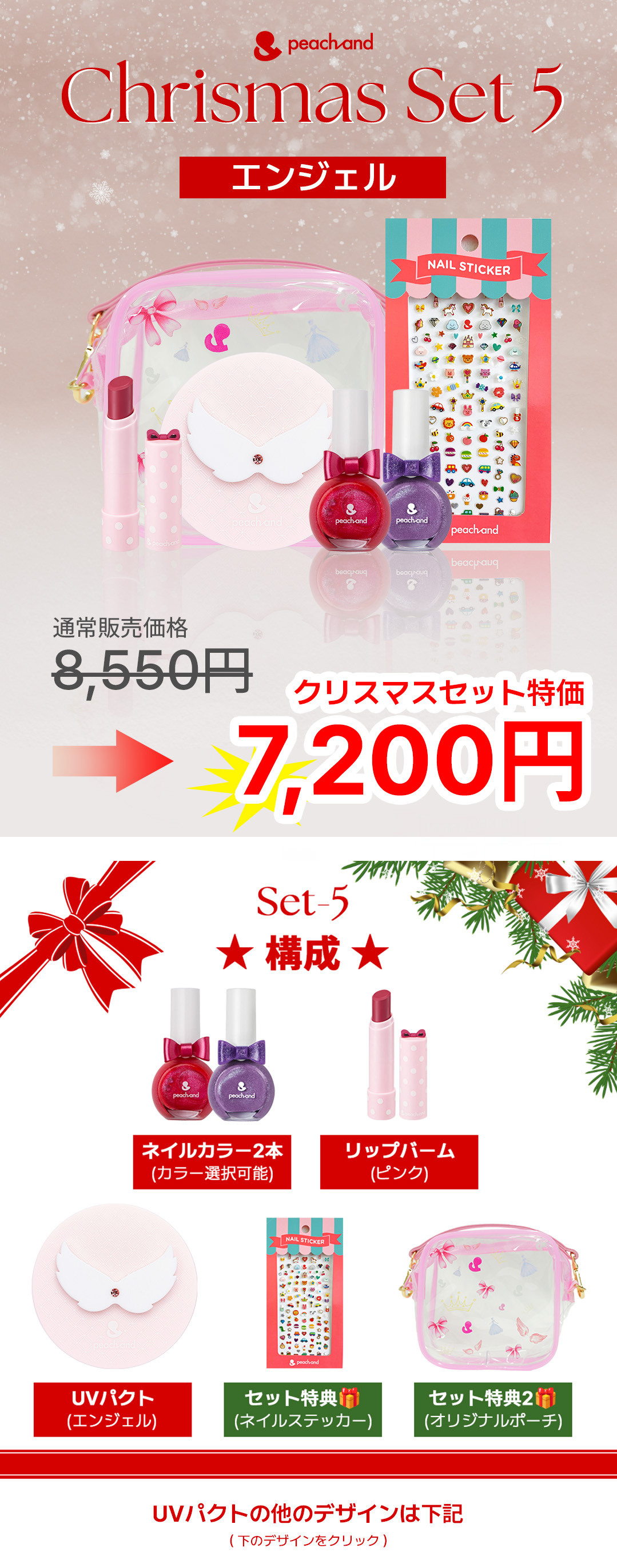 【クリスマスset5】4+2点set★UVパクト(エンジェル)+ネイル2色選択+リップカラースティック+ネイルステッカー + オリジナルポーチセット クリスマス限定ラッピング付き